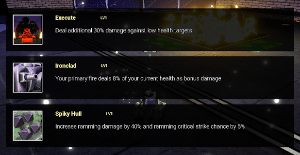Key in designing upgrades that were to be combined, I made each upgrade very specific in its' functionality. There is no upgrade that upgrades your all damage by X percent. Instead, it upgrades your damage when a condition is met, only one source of your damage, or is only available on specific weapons. This allows players to discover interactions between specific offensive, utility and defensive power-ups.