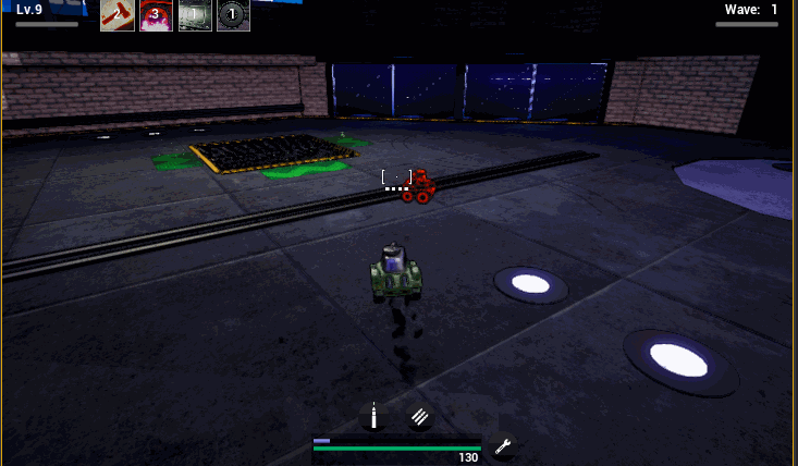 One of the most enjoyed features of many playtesters was the ability to damage enemy tanks by colliding with them. I followed the fun, tweaking the acceleration and turning rate of the tank character to accomodate for a "ramming" playstyle.