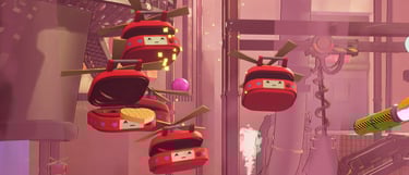 I worked on 2 level design ingredients: the Soda fountain and the soda can pick-ups, which refuel the players' jetpack energy bar.