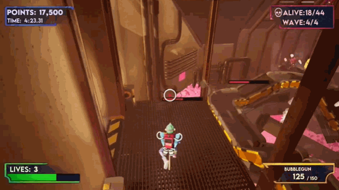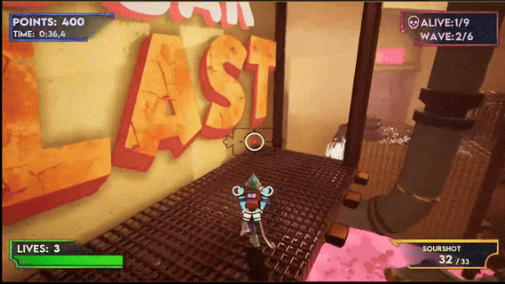 For myself, I learned a lot about combat design, especially in 3D spaces with all these vertical movement options added to the mix, whether it was the player movement, enemy design, level design or all the other challenges that came with this third-person shooter.