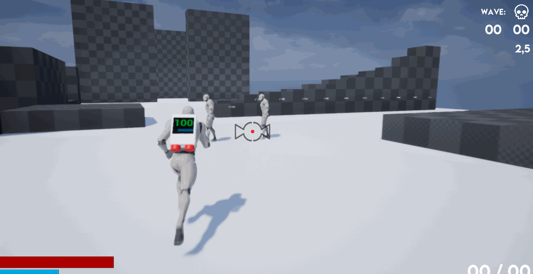 The research done on AI navigation was used for the Baker Bot enemy, while I decided to prototype and test a basic flying enemy AI. Instead of using full-on pathfinding, it relied on simple line-traces and distance checks to the player to find a suitable target location and slowly move there with the projectile movement component. Additionally, I replaced the default Unreal Engine mannequin with a 3D block-out of the enemy visuals.