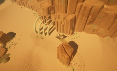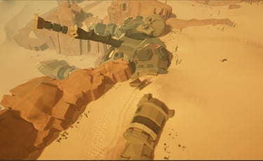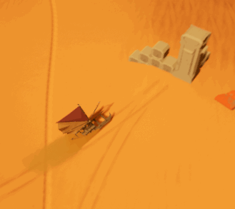 In smaller strike teams, we took vehicle prototype with different designs and playtested them. We tested some fast-paced "excitement" prototypes based on the ray-traced sandbuggy vehicle. We also took some designs oriented towards a slower, more strategic type of movement, where we experimented with external terrain effects such as winds heavily affecting the player vehicle movement.