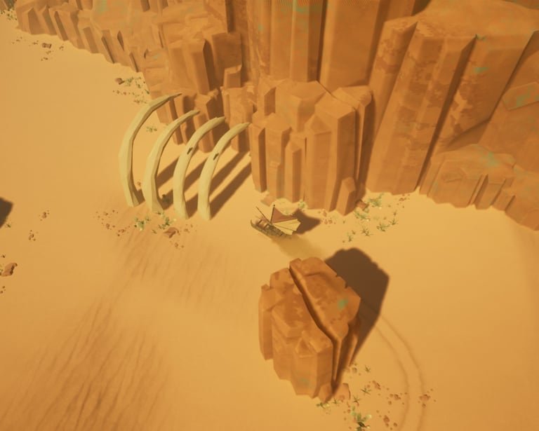 Dune Strider is an Adventure-Strategy Game in which you, the player, take command of a merchant controlling a Sand-Barge in a desert and use it to travel and explore the land around you. The road to settlements to sell your goods is filled with dangers and opportunities. Can you handle it?