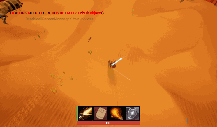 As we settled on our general 3C's and game direction, I used the Unreal Engine Gameplay Ability System to create weapon and ability concepts in Dune Strider. One example of the initial concepts made was the Exploding Barrel ability seen on the right. Players could activate it to fire an area of effect explosion, dealing damage and slowing enemies.
