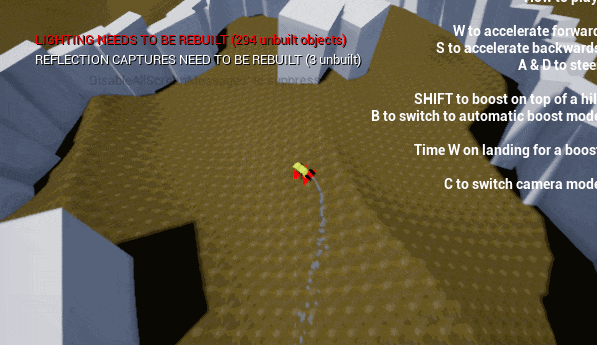 As the development continued, the programming and art department took the prototypes and further refined them. I playtested and iterated upon the gamefeel of the vehicle. I added audiovisual feedback to the core movement features. i.e, when colliding with terrain.