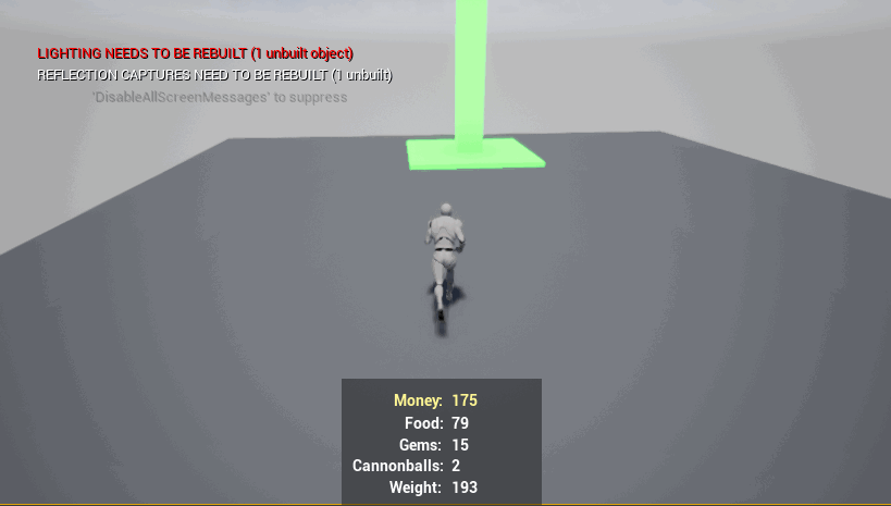 In this prototype, players balance four different resources to earn a profit. The catch is that players also use these resources while moving from location to location. For example, investing in a lot of cannonballs could make you a combat powerhouse, but also makes you slower, and use up more food in your travel from A to B.